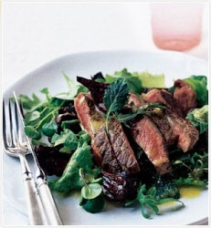 3. Cortar el bistec en trozos finos; dejarlo de lado. Agregarle las hojas verdes con el aderezo restante; dividir las porciones entre 4 platos grandes de ensalada. Agregar el bistec, las cebollas, el aguacate, los tomates y el queso azul.