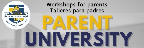 Dos años de la pandemia del COVID-19 sin duda han dejado a las escuelas, municipalidades y organizaciones comunitarias sin otra alternativa que pivotar e idear nuevas formas de llegar a las familias en la forma más segura y efectiva posible. Pero a pesar de los retos, dar a niños y familias una educación de calidad y recursos se ha mantenido a la vanguardia en el Distrito 99 de Cicero. Siguiendo el éxito del programa virtual Parent University reimaginado el año pasado, el Distrito 99 se enorgullece en ofrecer una vez más a la comunidad de Cicero un evento que, por más de una década ha inspirado, animado a las familias del área en su camino al éxito. El sábado, 19 de marzo, de 10 a.m. a 2 p.m. Parent University incluirá docenas de presentadores del Distrito 99, programas de enlace comunitario y organizaciones familiares del área . El evento tendrá lugar en Unity Junior High School (2115 S. 54th Ave.) y seguirá los requisito locales de usar el tapabocas y otras precauciones de salud. El programa completo será ofrecido con presentaciones en inglés y español. Los tópicos cubiertos incluirán resúmenes de programas educativos en el Distrito 99, apoyando la salud mental en casa, estrategias para la inclusión de niños con necesidades especiales, consejos para el desarrollo personal de familias, como entender las políticas de inmigración, compra de casa por primera vez y más. Además, Parent University ofrecerá cuidado infantil gratuito para niños de 4 a 14 años. Para inscribirse para el evento o para más información, visite www.cicd99.edu/parents/pu2022