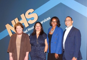 Enla foto (Izq-Der) Cindy Holler, Presiente y CEO, Capital de Vivienda Comunitaria Joanna Trotter, Directora Ejecutiva y Funcionaria Senior del Programa Global Philanthropy, Urbanización Vecinaria, JPMorganChase, Janice Crawford, Funcionario en Jefe de Crédito, NHS de Chicago, Anthony E. Simpkins, Presidente y CEO, NHS de Chicago. (Foto: NHS de Chicago)